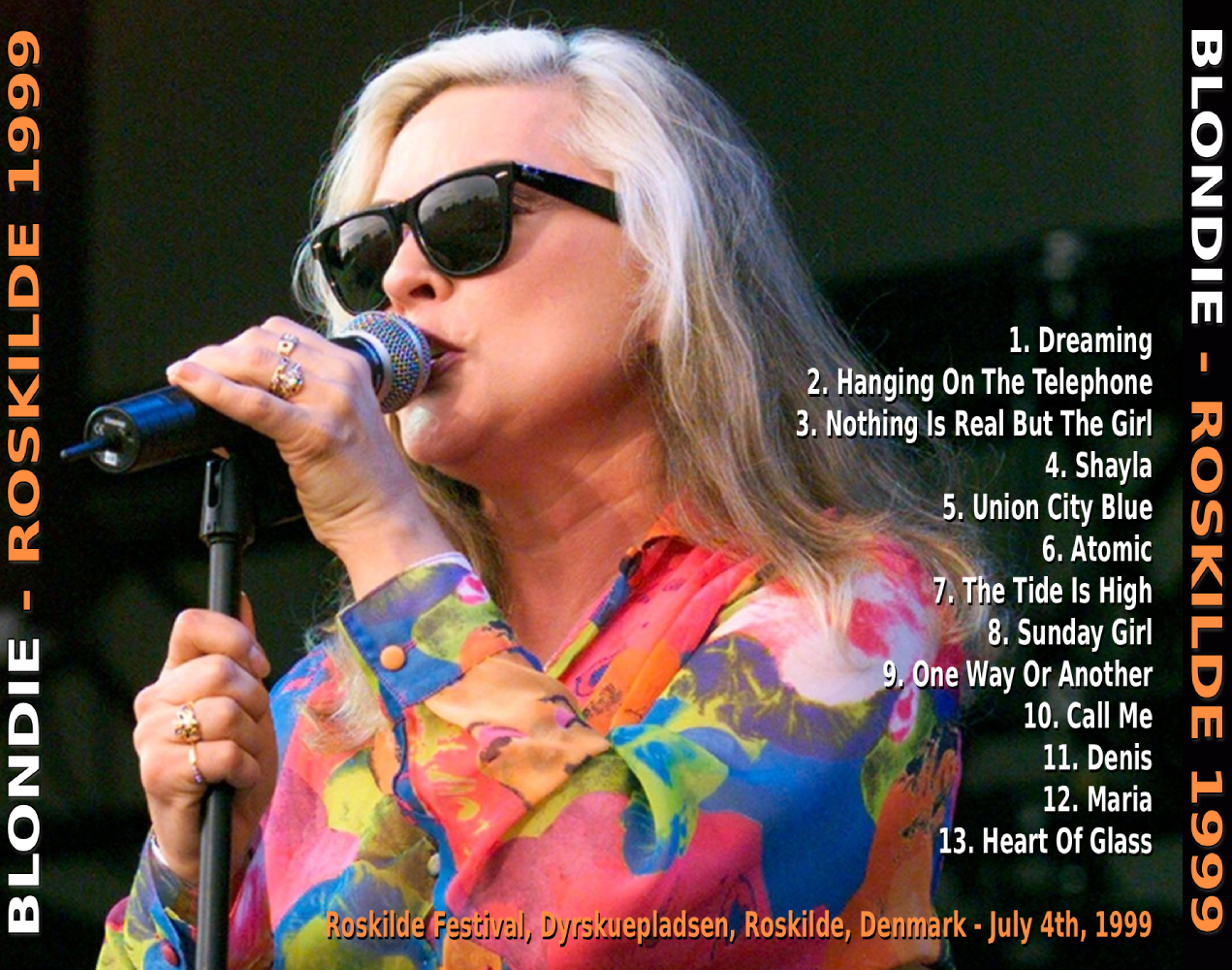 Label : no label Venue : Roskilde Festival, Dyrskuepladsen, Roskilde, Denmark Recording Date : July 4th, 1999 Length : 55:10 Quality : FM Recording (A+) Review : Excellent FM recording of Blondie's set at the 1999 Roskilde Festival. Nice document. |