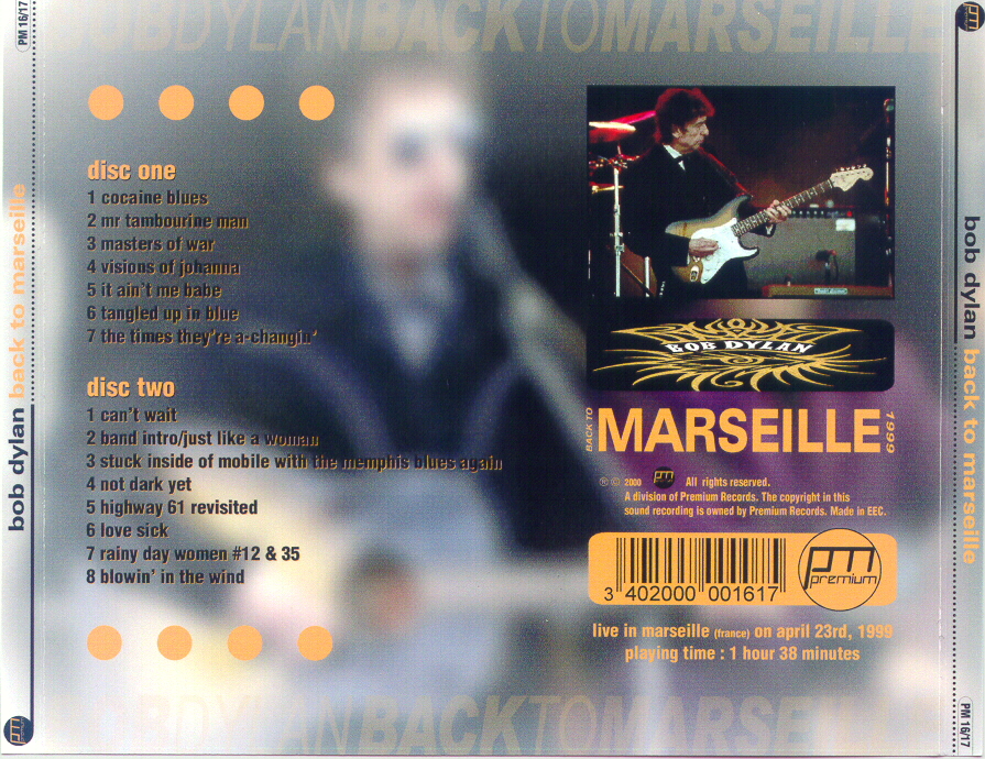Review : Good audience recording of Bob's show in Marseille in 1999. |
