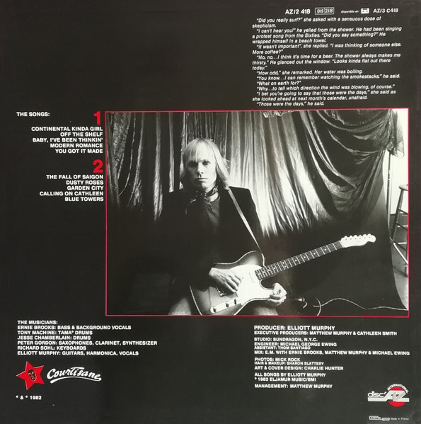 Label : Courtisane Records Release Date : 1982 Length : 43:23 Review (AllMusic) : By the time of his fifth full-length album, Elliott Murphy had established himself as a club act in the Northeast and in Europe, touring with a tight band consisting of former Patti Smith Group keyboard player Richard Sohl, former Modern Lover Ernie Brooks, and drummer Tony Machine. Murphy, with his Stratocaster as the focus, however, was turning out a series of literate rock songs full of allusions to New York City and references to novelists and movie stars. On Murph the Surf, he reflected on everything from "Modern Romance" to "The Fall of Saigon" (metaphorically, anyway) with his characteristic wit. |
