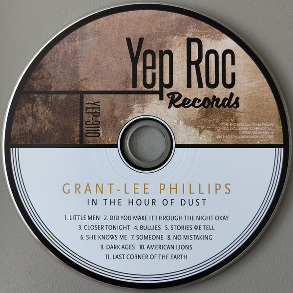 Label : Yep Roc Records Release Date : September 5, 2025 Length : 46:44 Review (Americana UK) : Although known for his musical exploits, Grant-Lee Phillips first started out as a visual artist; however, on arriving in Los Angeles in the early 1980s, coinciding with the formative days of the underground music scene, he changed tack, channelling his energy into writing, recording, and performing music. Phillips has never given up on the visual arts, though and sees that painting and songwriting go hand in hand; “As a lyricist, I tend to be a visual person too; I’m painting scenery with words, setting the stage, capturing a mood”. Nashville-based Phillips first became known as the singer, guitarist, and songwriter of americana band Grant Lee Buffalo, who released four studio albums during the 1990s. Grant Lee Buffalo disbanded in 1999, at which point Phillips began his solo career. He also appears in the comedy TV series “Gilmore Girls” as the town troubadour. “In the Hour of Dust” is Phillips’ 12th solo LP, and he describes it as contemplative; “Trying to find meaning in an age of confusion, feeling your way through the blinding dust of unreality”. It’s a highly personal opus, with the songs’ lyrics often autobiographical. As well as writing all of the songs on the album (including one co-write), Phillips is responsible for production; he also contributes vocals and guitars across the record and additional keyboards and bass guitar in places. Oh, and he painted the image on the album cover, too. The other musicians featured on the album are top-quality, in-demand session and touring players; the lifetime partnership rhythm section of Jay Bellerose (drums and percussion) and Jennifer Condos (bass guitar), along with Patrick Warren on keyboards. Between them, these musicians have worked with a veritable ‘Who’s Who‘ of artists, from Robert Plant and Alison Krauss, to Bonnie Raitt, Rhiannon Giddens, Aimee Mann, Suzanne Vega, Madeleine Peyroux, Elton John, Rod Stewart, Melissa Etheridge, Beth Hart, Bruce Springsteen and Stevie Nicks. Bellerose, Condos, and Warren have also all played together as members of the band Over The Rhine. The album opens with ‘Little Men‘, a song about the basic right of the American people to be free, which, even currently, is not a given; ultimately though Phillips expresses his belief in humanity “Nothing lesser than emancipation, Baby there’s no sweeter song, Little men who want to rule like Caesar, Can’t hold the tide off for long“. Interestingly, ‘Did You Make It Through the Night Okay‘ refers to the way that people of the Muskogee (Creek) Nation (of which Phillips is an enrolled citizen) greet each other; rather than wish each other “Good morning” a term which has no equivalent in the Creek language, the greeting is the perhaps more meaningful “Estonkon cukhayvtikv”, with its literal meaning “Did you make it through the night okay?” This song has a catchy chorus. Phillips co-wrote ‘Bullies‘ with long-time collaborator Jamie Edwards; it reflects on memories of schoolyard bullies, pondering whether the bullies ever grow out of their trait or whether they end up the same in adult life, working in jobs that reward them for this behaviour. The song’s lyrics describe it thus “What a friendless place it’s become, Senseless, ask anyone, Hard to believe, the one that you know, Will be different tomorrow, Love to make a fool of us, On the schoolyard again, Oh, the world is full of bullies, You just can’t give in to them“. Released as a single and described by Phillips as one of the most personal songs on the LP, ‘She Knows Me‘ is a standout on the record; it is about the fears and insecurities that Phillips has and the gratitude he has that he has someone who knows him, as he puts it “better than I do myself at times“. Phillips’ guitar playing is a highlight here. ‘No Mistaking‘ describes Phillips’ relationship with his wife (a fellow artist) and how they have grown over time; “Whenever I’m with you, Time is a blur, Talk ‘til two in the morning, Never run out of words, In the blink of an eye, Watching the sun rise, How many times, No mistaking, this is love“. ‘Last Corner of the Earth‘ closes the album in anthemic fashion, with Phillips sending a powerful message, urging us all to not give up hope “You don’t look backwards, you just drive, With your eyes glued to the curve, Don’t lift your foot ‘til you’ve arrived, At the last corner of the earth, You won’t sleep ‘til you’ve arrived, At the last corner of the earth“. This is a personal, reflective record, which comes across strongly in the lyrics. The performances are strong, reflecting the quality of the musicians employed. Review (Twangville) : I looked up the word “cinematic” and, not surprisingly, all the definitions center around visual elements. Yet, it’s one of the first words that came to my mind as I listened to the new record from Grant-Lee Phillips, In the Hour of Dust. The album’s title is taken from an 1800’s painting of cattle being herded home as part of the preparation for nightfall. It’s perhaps the first indicator of how visuals drive a story and the story drives a visual, something few people are as adept at as Phillips. Take, for example, American Lions. It’s a story from his past about visiting the tar pits at La Brea and imaging what LA would have been like when sabre tooth tigers roamed the area. Bullies reminds us of the jerks from the schoolyard that have managed to keep that personality intact throughout their life. Along a similar thematic vector is Little Men, about those “who want to rule like Caesar” and keep true freedom from so many. Aurally it’s an alt-country ballad and gives off some of the vibe from Phillips earlier incarnation, Grant Lee Buffalo. He strips everything down to just himself on a few instruments, plus a drum track, on She Knows Me. That 