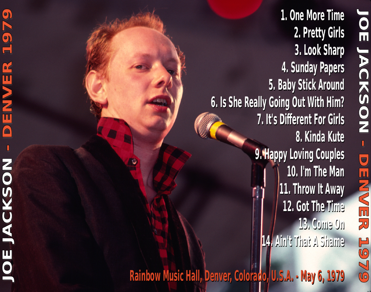 Label : no label Venue : Rainbow Music Hall, Denver, Colorado, USA Recording Date : May 6, 1979 Length : 56:12 Quality : FM Recording (A+) Review : Despite an injured foot and performing while seated on a barstool, Joe Jackson delivered an energetic concert at The Rainbow Hall. The show runs for 56 minutes, which is quite long for a concert from that era. It was professionally recorded and broadcast on the radio. Highly recommended for all Joe Jackson fans. |