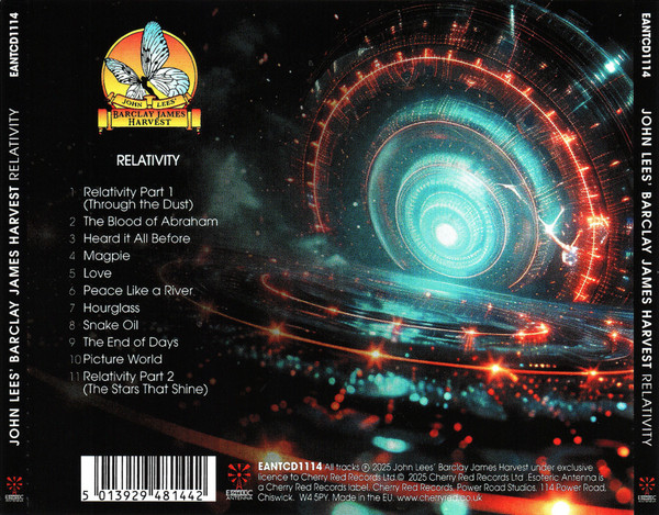 Label : Cherry Red Records Release Date : October 17, 2025 Length : 77:58 Review (ProgWereld) : Twaalf jaar na het laatste studioalbum “North” is daar dan eindelijk weer nieuw studiowerk van Barclay James Harvest (BJH) onder de titel “Relativity”. De groep die al sinds 1966 bestaat, heeft daarmee een langverwachte belofte ingelost. BJH is een van die bands waarvan er twee incarnaties bestaan; net als Yes (ooit) en Wishbone Ash (nog steeds) zijn er sinds 1998 twee verschijningen: één met bassist Les Holroyd als centrum en één met gitarist John Lees als middelpunt. Het album dat nu verschijnt, komt uit de koker van die laatste, de naam van de band is aldus John Lees’ Barclay James Harvest (JLBJH), om aan alle onduidelijkheid een einde te maken. Lees, inmiddels 78 jaar oud, is dus de drijvende kracht achter deze band. Hij rekruteerde in 1998 voormalig toetsenist Stuart “Woolly” Wolstenholme en verzamelde een aantal capabele musici rond zich, waarvan bassist Graig Fletcher en drummer Kevin Whitehead tot de dag van vandaag deel uitmaken. In 2009 voegde zich Jez Smith als tweede toetsenist bij het ensemble. Helaas overleed Wolstenholme in 2010 en sindsdien is het viertal bij elkaar en werd er ook nog een album opgenomen en regelmatig live opgetreden. Een mooi voorbeeld daarvan is het in 2023 uitgekomen livealbum “Philharmonic!”, waarop de band optrad samen met een volwaardig symfonieorkest. Nu is er dan eindelijk nieuw werk van het viertal. En het is ook nog eens een echt groepsalbum, alle vier muzikanten droegen in compositorisch opzicht bij aan het twaalftal nieuwe nummers die in totaal 78 minuten in beslag nemen. De verzameling liedjes is losjes gebaseerd op het concept van menselijke en kosmische interactie en relaties. In muzikaal opzicht is er niets nieuws onder de zon, de bekende, door toetsen (Mellotron) gedomineerde, muziek staat nog steeds fier overeind. Er zijn geen nieuwe iconische nummers als Child of the Universe of Mocking Bird meer te ontdekken, maar dat hoeft ook helemaal niet. Er blijft genoeg te genieten over. Vooral titelnummer Relativity, deel 1 is de opener en deel 2 fungeert als afsluiter, liggen dicht tegen de legendarische nummers uit het verleden aan. Symfonisch georiënteerde muziek, zwaar leunend op toetsengordijnen en een enkele gitaarsolo van Lees. Ook het door Lees gezongen Magpie ligt in het verlengde van songs die BJH zo kenmerken. Verder zijn er veel melodieuze composities die, hoewel solide van aard, van iedere tegenwoordige (rock)band afkomstig hadden kunnen zijn. Met een enkele uitschieter naar boven zoals het sterk aan The Moody Blues verwante, door Fletcher gezongen Love. Het negen minuten durende Snake Oil met Lees’ gitaarsolo in duet met het Hammondorgel van Smith, klinkt bijna als een Eagles–achtige song met Don Henley vocalen van Fletcher. Opvallend is verder de al eerder gememoreerde uitstekende zangprestatie van bassist Fletcher, zijn vocalen dragen de meeste composities. De stem van Lees klinkt, hoewel nog steeds uiterst herkenbaar, nog heser en omfloerster dan deze al was ten tijde van Hymn. De band speelt hecht en geconcentreerd, de ritmesectie Fletcher/Whitehead is solide en de akoestische gitaren, harmoniezang en smaakvolle toetsenpartijen van Jez Smith doen de rest. Lees had wat mij betreft nog wat meer nadrukkelijk aanwezig mogen zijn, zijn sologitaarpartijen zijn spaarzaam. De ervaren engineer Stephen W Tayler (onder andere Kate Bush, Rush, Howard Jones, Rupert Hine en Tina Turner) is verantwoordelijk voor opname en geluid, en dat laatste is dik in orde. De vergelijking met The Moody Blues zal altijd wel blijven bestaan. Niet voor niets schreef Lees ooit Poor Man’s Moody Blues als felle reactie op een criticus die de muziek van beide bands met elkaar vergeleek. Vooral het karakteristieke Mellotrongeluid en de harmonieuze samenzang zijn hier debet aan. Maar zoals Wolstenholme fijntjes opmerkt tijdens de weergave van het nooit eerder uitgebrachte concert – opgenomen tijdens RosFest, Pennsylvania, VS uit mei 2009, als bonus bij het nieuwe studioalbum – misschien zien The Moody Blues hun muziek wel als ‘rich man’s Barclay James Harvest’. Dat concert is overigens een heerlijk toetje, de bekende epische (Lees) nummers komen voorbij, For No One, Child of the Universe, Mocking Bird en Medicine Man. Met als extra toegevoegde waarde de aanwezigheid van Wolstenholme. Een mooie toegift bij het uitstekende nieuwe studioalbum van de band die ooit geen keuze kon maken uit de beschikbare namen en ze toen maar allemaal nam. Review (Bluestown Music) : Ondanks dat de band werd weggezet als “Poor man’s Moody Blues” leverde men prima albums af in de vorm van ‘Time Honoured Ghosts’ (1975), ‘Octoberon’ (1976), ‘Gone To Earth’ (1977), terwijl de groep ook op het podium zijn mannetje stond, getuige onder meer het fraaie livedocument ‘Live Tapes’ uit 1978. In de jaren tachtig en negentig verliep de carrière van het kwartet stroever en dat leidde in 1998 tot de onvermijdelijke split. Sinds dat moment zijn er twee BJH-incarnaties: Barclay James Harvest Featuring Les Holroyd en John Lees’ Barclay James Harvest, Pritchard en Wolstenholme hebben zich inmiddels gemeld in de rock ’n roll-hemel. Natuurlijk teren beide bands op het materiaal uit de hoogtijdagen maar John Lees biedt ook nieuw materiaal: in 2013 verscheen ‘North’ en na twaalf jaar platenstilte is er nu dus dit album ‘Relativity’ met een elftal kakelverse liedjes, een toch wel imposant werkstuk met een speelduur van 78 minuten. Als je dit nieuwe album naast de hierboven genoemde lp’s legt, zul je merken dat het proggehalte minder aanwezig is, maar dat tast de genietbaarheid totaal niet aan. Samen met zijn muzikale maten Craig Fletcher (bas), Jez Smith (toetsen) en Kevin Whitehead (drums) biedt hij een dosis prima progpop, een cd die je op elk moment van de dag in je cd-speler/op je platenspeler kunt afspelen. Naast de standaard-cd en dubb