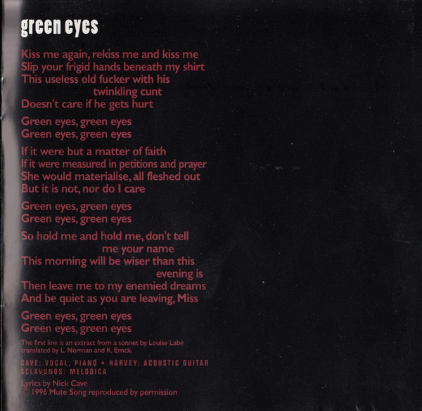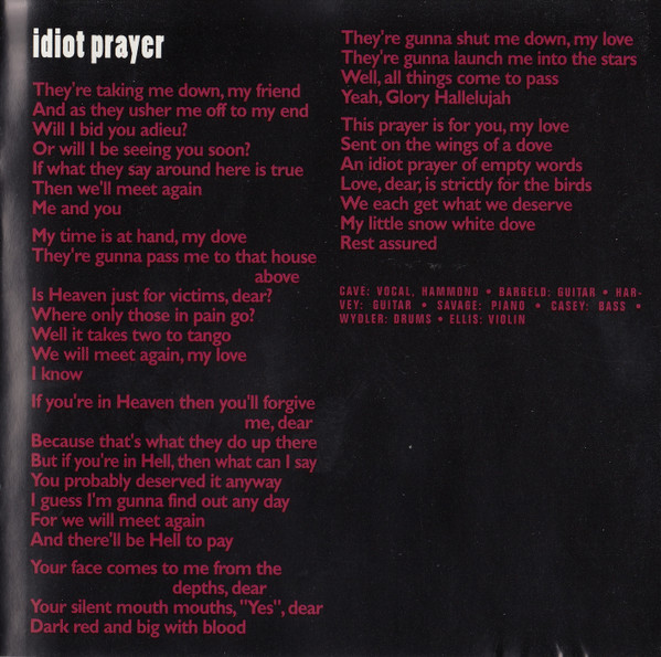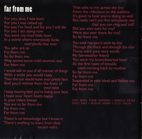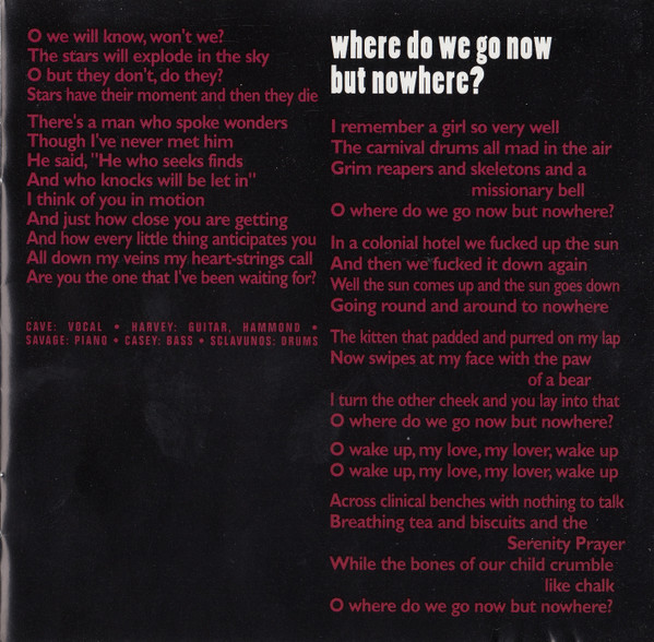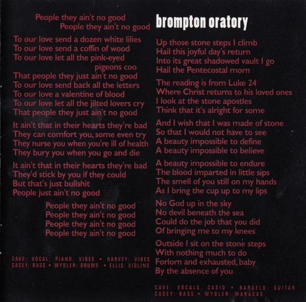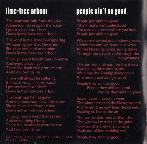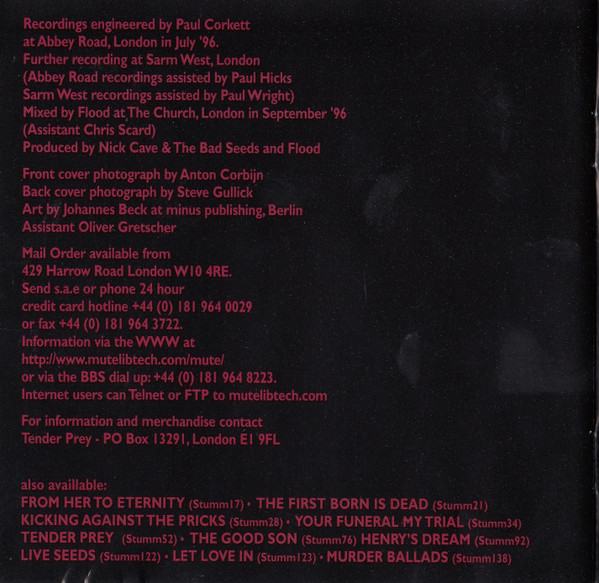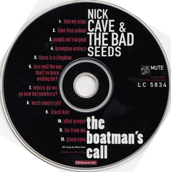 Label : Mute Release Date : March 3, 1997 Length : 51:56 Review (AllMusic) : Murder Ballads brought Nick Cave's morbidity to near-parodic levels, which makes the disarmingly frank and introspective songs of The Boatman's Call all the more startling. A song cycle equally inspired by Cave's failed romantic affairs and religious doubts, The Boatman's Call captures him at his most honest and despairing -- while he retains a fascination for gothic, Biblical imagery, it has little of the grand theatricality and self-conscious poetics that made his albums emotionally distant in the past. This time, there's no posturing, either from Cave or the Bad Seeds. The music is direct, yet it has many textures, from blues to jazz, which offer a revealing and sympathetic bed for Cave's best, most affecting songs. The Boatman's Call is one of his finest albums and arguably the masterpiece he has been promising throughout his career. Review (Wikipedia) : The Boatman's Call is the tenth studio album by the Australian rock band Nick Cave and the Bad Seeds, released on 3 March 1997 by Mute Records. The album is entirely piano-based, alternately sombre and romantic in mood, making it a marked departure from the bulk of the band's post-punk catalogue up to that point. The Boatman's Call remains one of the most critically acclaimed releases of Nick Cave's career. Recording for the album began at Sarm West Studios in London, England in mid-1996, with "The Garden Duet", one of the album's outtakes, being the first song recorded. Though the bulk of The Boatman's Call was recorded at Sarm West, further recordings—including overdubs—were later done at Abbey Road Studios. Musically, the album's tone is considered sombre and minimalist and marks a major departure for Cave and the Bad Seeds. Moving away from full-band arrangements and character-based narratives, the album's music and lyrics move towards the more intimate sound of Cave's solo voice accompanied by piano or a few other instruments. The tempo is also generally slow, reflecting many of the moods of the songs. Many of the lyrics seem to reflect on Cave's personal relationships and spiritual yearnings at the time of writing. Some songs are thought to be directed at either the mother of Cave's oldest son Luke, Viviane Carneiro (in "Where Do We Go Now But Nowhere?") or singer PJ Harvey, with whom he had a brief relationship around that time (as referenced in "West Country Girl", "Black Hair" and "Green Eyes"). "Green Eyes" includes a line from "Sonnet 18" by the French Renaissance poet Louise Labé (Kiss me, rekiss me, & kiss me again). Cave performed "Into My Arms" at the 1997 funeral of INXS vocalist Michael Hutchence, an old friend from Cave's youth, and requested that the TV cameras be shut off for his performance out of respect for Hutchence. The song "People Ain't No Good" was also featured in the film Shrek 2 (2004). The song "There Is a Kingdom" was featured in the film Zack Snyder's Justice League (2021). In October 2010, the album was listed in the top 30 in the book, 100 Best Australian Albums (2010). The Boatman's Call received almost unanimous critical acclaim upon release with many reviewers citing it as Cave's most poignant album. Writing in NME, James Oldham concluded that the album is "a stark look at all that he's been through, recounted with withering bleakness and arid humour", noting "Cave's magnificent lyrics, riddled with comic misanthropy and New Gospel humanity", and "their starkly beautiful accompaniments". The magazine rated it as the 23rd best album of 1997. The album was also included in the book 1001 Albums You Must Hear Before You Die (2010). |