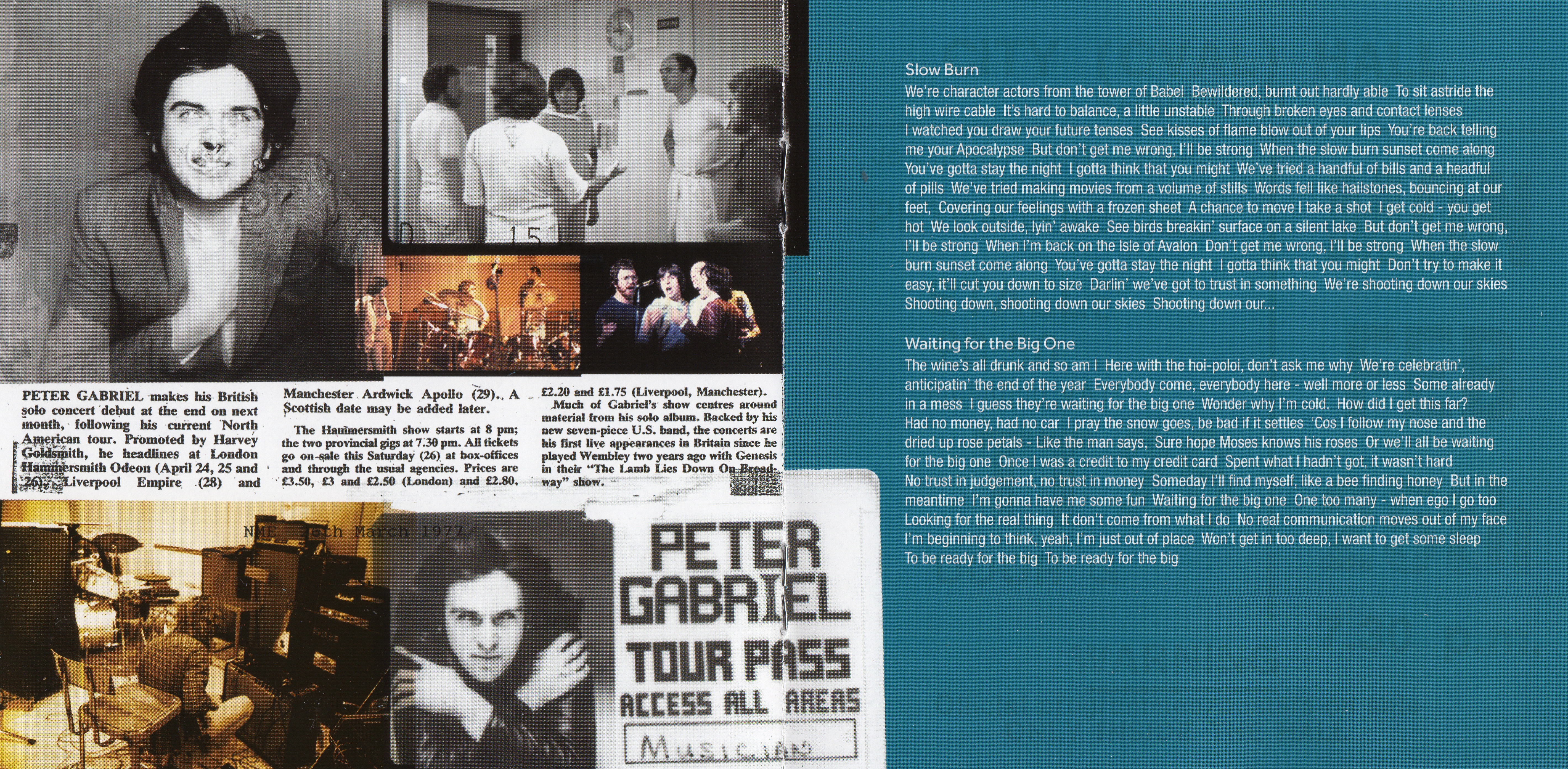 Label : Real World Records Release Date : 1977 Length : 41:42 Review (AllMusic) : Peter Gabriel tells why he left Genesis in "Solsbury Hill," the key track on his 1977 solo debut. Majestically opening with an acoustic guitar, the song finds Gabriel's talents gelling, as the words and music feed off each other, turning into true poetry. It stands out dramatically on this record, not because the music doesn't work, but because it brilliantly illustrates why Gabriel had to fly on his own. Though this is undeniably the work of the same man behind The Lamb Lies Down on Broadway, he's turned his artiness inward, making his music coiled, dense, vibrant. There is still some excess, naturally, yet it's the sound of a musician unleashed, finally able to bend the rules as he wishes. That means there are less atmospheric instrumental sections than there were on his last few records with Genesis, as the unhinged bizarreness in the arrangements, compositions, and productions, in tracks such as the opener "Moribund the Burgermeister" vividly illustrate. He also has turned sleeker, sexier, capable of turning out a surging rocker like "Modern Love." If there is any problem with Peter Gabriel, it's that Gabriel is trying too hard to show the range of his talents, thereby stumbling occasionally with the doo wop-to-cabaret "Excuse Me" or the cocktail jazz of "Waiting for the Big One" (or, the lyric "you've got me cookin'/I'm a hard-boiled egg" on "Humdrum"). Still, much of the record teems with invigorating energy (as on "Slowburn," or the orchestral-disco pulse of "Down the Dolce Vita"), and the closer "Here Comes the Flood" burns with an anthemic intensity that would later become his signature in the '80s. Yes, it's an imperfect album, but that's a byproduct of Gabriel's welcome risk-taking -- the very thing that makes the album work, overall. Review (Written In Music) : Het eerste soloalbum van Peter Gabriel, simpelweg 1 getiteld maar door de opvallende hoes ook wel ‘car’ genoemd, betekende door de grote hit Solsbury Hill gelijk een vliegende start. Solsbury Hill, vernoemd naar een plek dichtbij zijn woonplaats Box (dichtbij Bath, Zuidwest-Engeland) verhaalt over zijn beslissing om Genesis, die band die hij mede opgericht had en groot gemaakt had, te verlaten. Een beslissing die genomen werd door familieredenen en waarvan hij voelde dat deze door de rest van de leden van Genesis niet werd begrepen. Vanuit het Genesiskamp gaven ze aan Gabriel ‘te hebben laten gaan’ omdat hij, door zijn theatrale performances, teveel het gezicht van de band was geworden en de anderen wel heel duidelijk in zijn schaduw stonden. De eerste solo van Gabriel werd opgenomen met de Canadees Bob Ezrin als producer en gitarist Robert Fripp van King Crimson als belangrijkste man in zijn band. Opvallend was dat Tony Levin, de bassist die vervolgens lange tijd in Gabriels band bleef en mede verantwoordelijk was voor die volvette funksound die zijn latere hits zo kenmerkte (Sledgehammer!), ook in de band zat en later door Fripp werd benaderd om ook deel uit te komen maken van King Crimson. Het album werd grotendeels opgenomen in het Canadese Toronto met uitstappen naar Londen. Het album laten een grote groei in componeren van Gabriel horen. Als je de eerste periode van Genesis vergelijkt met The Lamb Lies Down On Broadway, het laatste album waar Gabriel als zanger en tekstschrijver (en hoe prominent bepalend) is die groei al zeer hoorbaar. Gabriel op eigen kracht was gelijk een heel ander verhaal. De fraaie muzikale diversiteit die op 1 te horen is laat dat wel heel goed horen. In een sound die meer rock georiënteerd is komen natuurlijk elementen van de latere periode van Genesis naar voren (Slowburn, Moribund The Burgemeister) maar Gabriel en zijn band weten deze elementen een knap nieuwe begeestering, minder progrockzwaar aangezet, mee te geven. Daarnaast is 1 vooral een album waarop Gabriel zijn muzikale tentakels uitslaat. De theaterpop van Excuse Me en de jazz van Waiting For The Big One zijn wel heel ver verwijderd van de sound van zijn vroegere band. En ook de georkestreerde disco op z’n Gabriels van Down The Dolce Vita is van een geheel andere muzikale orde. Daarnaast is Gabriel solo een man van songs zonder die lange instrumentale stukken die zijn vorige band en hun albums bevatten. De supervette productie van Bob Ezrin (die op dat moment vooral bekend was voor zijn werk met Lou Reed (Berlin), Alice Cooper (Billion Dollar Babies) en, opvallend genoeg, net voor Gabriel 1 het miljoenen verkopende Destroyer album van Kiss had gedaan) komt in Down The Dolce Vita en het wonderschone Here Comes The Flood wel heel dik uit de verf. (In alle eerlijkheid moeten we wel toegeven dat de productie wel heel erg 1977 is. Gabriel, zelf maar gedeeltelijk tevreden met de productie, nam Here Comes The Flood in de jaren 80 soberder en indrukwekkender opnieuw op). Gabriel 1 is een indrukwekkende eersteling van een muzikant die zich vanaf dat moment muzikaal niets meer in de weg liet leggen en zichzelf steeds weer opnieuw muzikaal uitvond. |