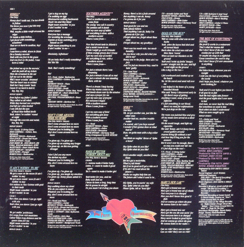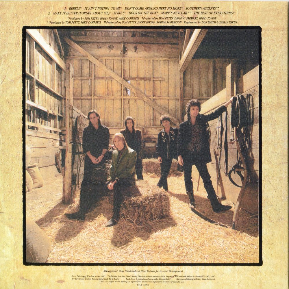 Label : MCA Records Release Date : March 26, 1985 Length : 39:30 Review (AllMusic) : Produced by Dave Stewart, Southern Accents is an ambitious album, attempting to incorporate touches of psychedelia, soul, and country into a loose concept about the modern South. Occasionally, the songs work; "Rebels" and "Spike" are fine rockers, and "Don't Come Around Here No More" and "Make It Better (Forget About Me)" expand the Heartbreakers' sound nicely. But too often, the record is weighed down by its own ambitions. |