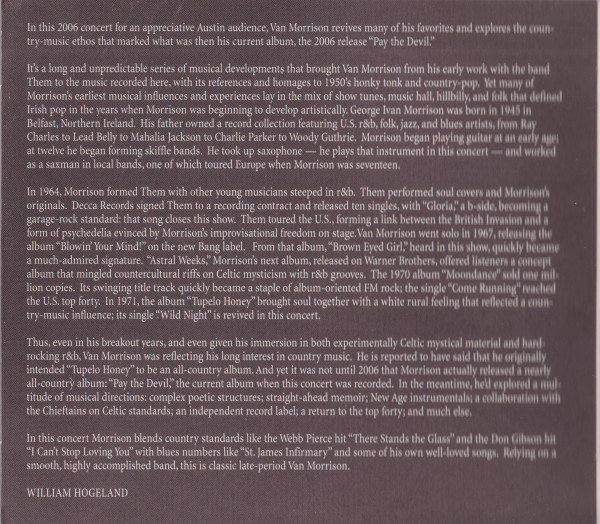 VAN MORRISON : LIVE IN AUSTIN, TEXAS 2006 |