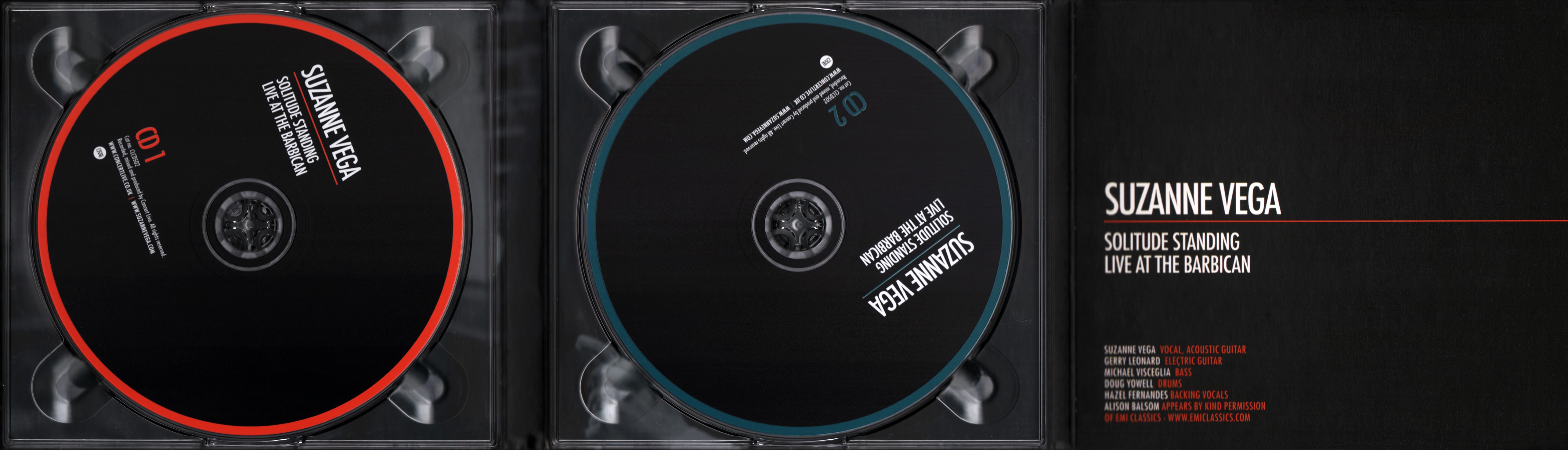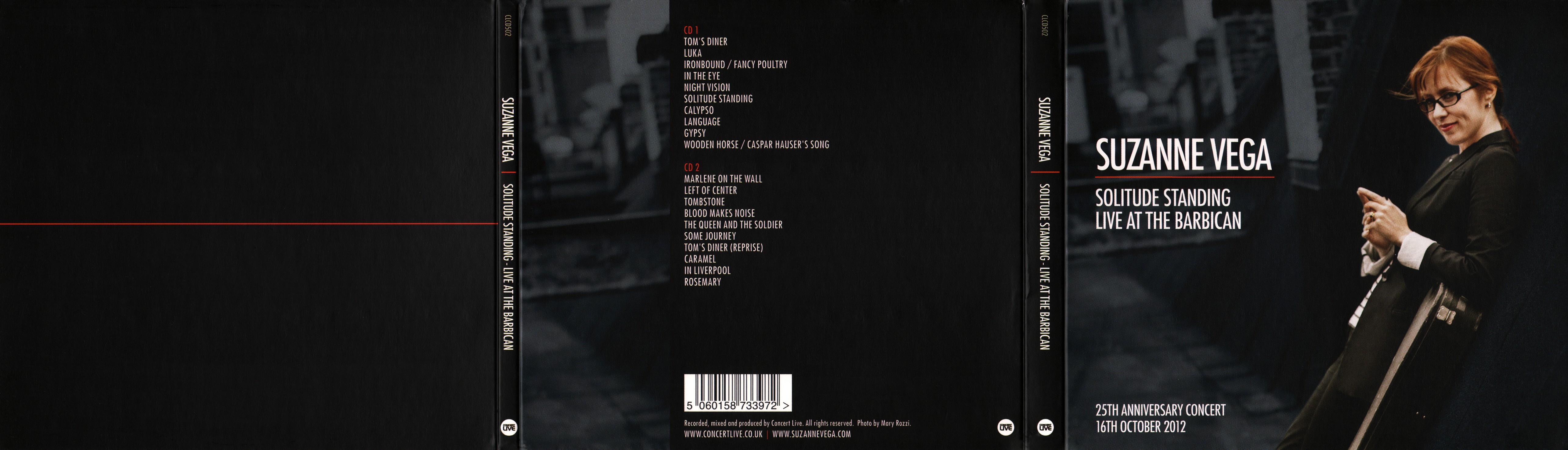 Label : Concert Live Venue : The Barbican, London, UK Recording Date : October 16, 2012 Release Date : December 18, 2012 Review (Wikipedia) : Solitude Standing: Live at the Barbican is a live album by the American singer/songwriter Suzanne Vega. It was recorded on 16 October 2012 at the Barbican Centre in London, on the final celebratory concert to mark 25th anniversary of her studio album Solitude Standing. Disc one is a live performance of a full album, second one contains other Vega's songs. |
